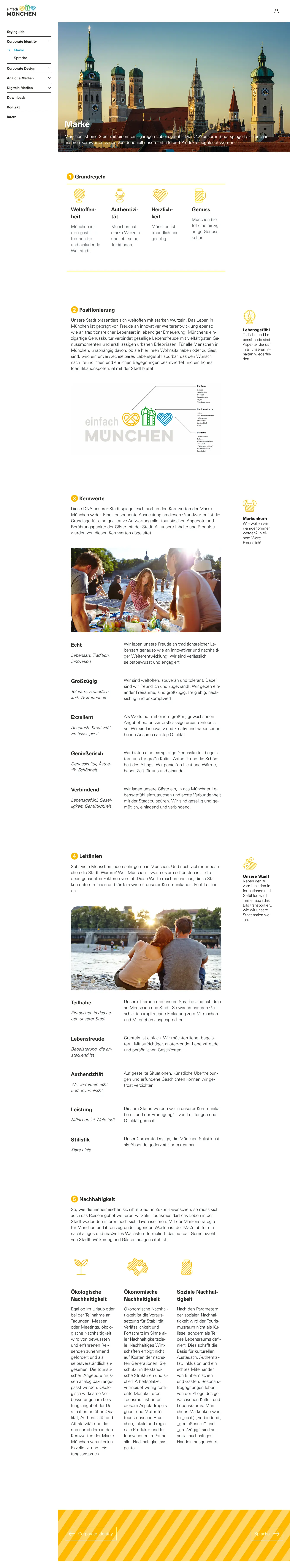 Die Landeshauptstadt München präsentiert sich der Welt offen, authentisch und herzlich. Um diesen „Markenkern“ einheitlich und CI-konform zu kommunizieren, planten die Verantwortlichen eine digitalen Styleguide. Mit dessen Hilfe wird es den Mitarbeitern der Stadt und ihren Partnern ermöglicht, die Außendarstellung konsequent umzusetzen. Datenwerk durfte eine geeignete Lösung vorschlagen und umsetzen.